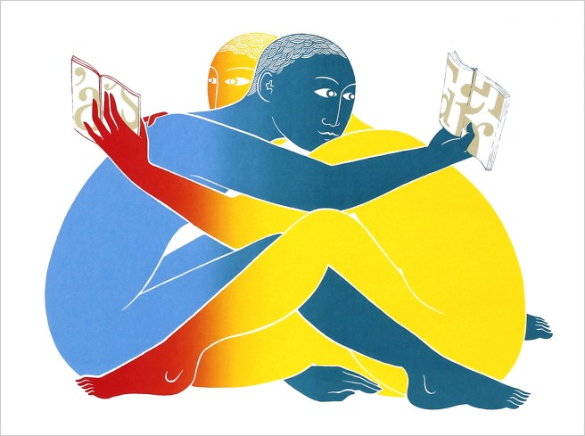 Does a joint hobby connect you with your loved one? Coupling (A Good Book) – Edition A is from Tom Berry’s Daily Rites series. What’s more romantic than reading to each other? This bold yellow and blue pair sit embraced and entranced by their novels, a great reminder of a passion you share with someone close.