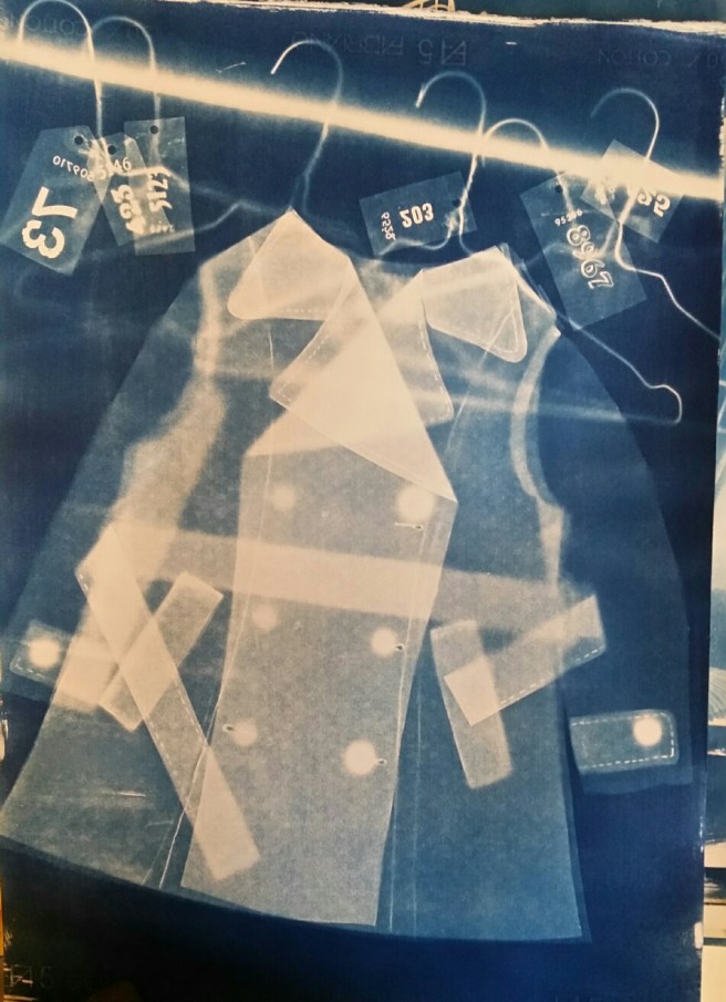 A cyanotype print of a coat. Image: Liz Loveless – Factory Press